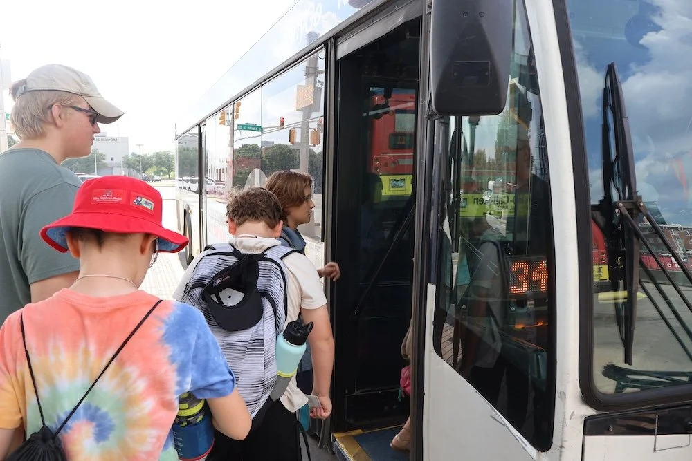Happy bus campers return to the Julia Carson Transit Center, to be picked up by their parents, or to return home on IndyGo.